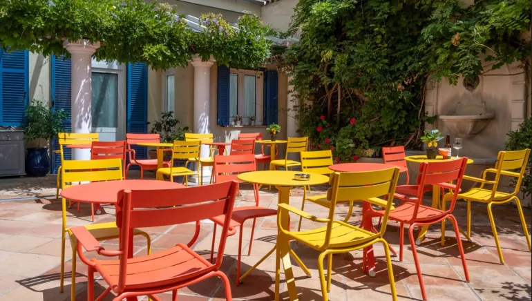 Le patio fleuri et ombragé vous accueille pour un délicieux petit-déjeuner buffet ou pour un apéritif sympathique après une journée de shopping, d’excursion ou tout simplement de plage (seulement à quelques pas). Parkings publics à proximité. Petits groupes de 25 personnes maximum acceptés selon disponibilités.