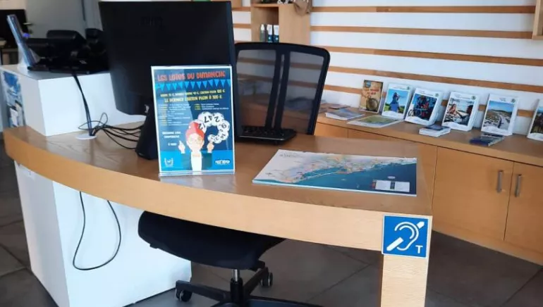 - LABEL TOURISME ET HANDICAP pour les 4 familles de déficiences, nous mettons à votre disposition une boucle magnétique afin de faciliter les échanges avec nos conseillères en séjour, l’accès à la documentation facilitée, l’accès PMR, une banque rabaissée facilitant la présentation et la prise de connaissance de la documentation.